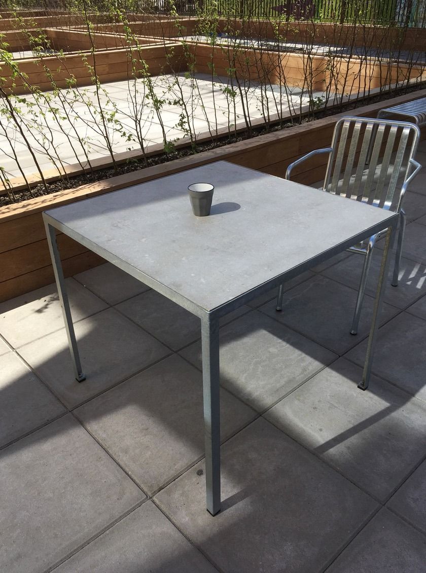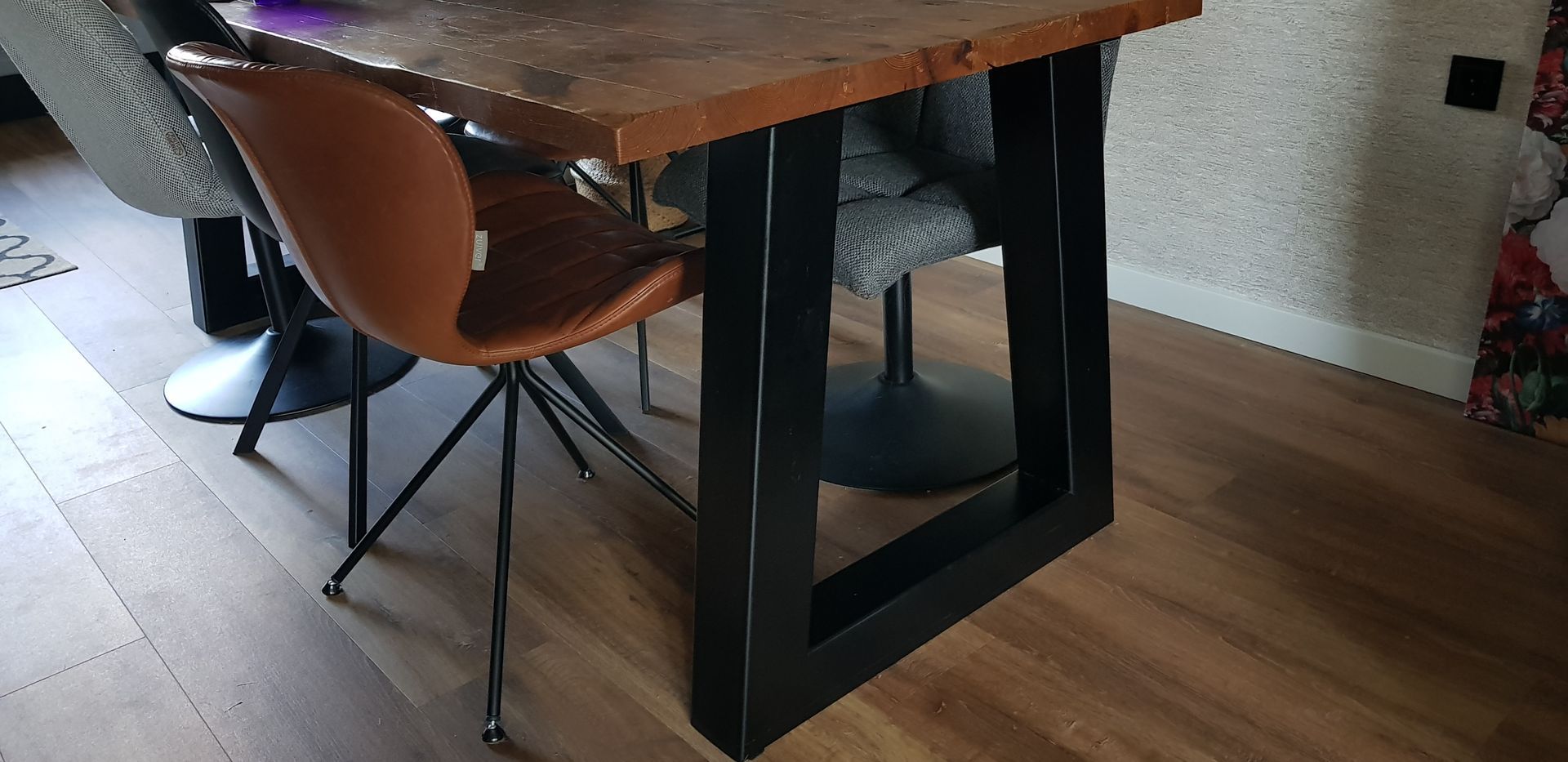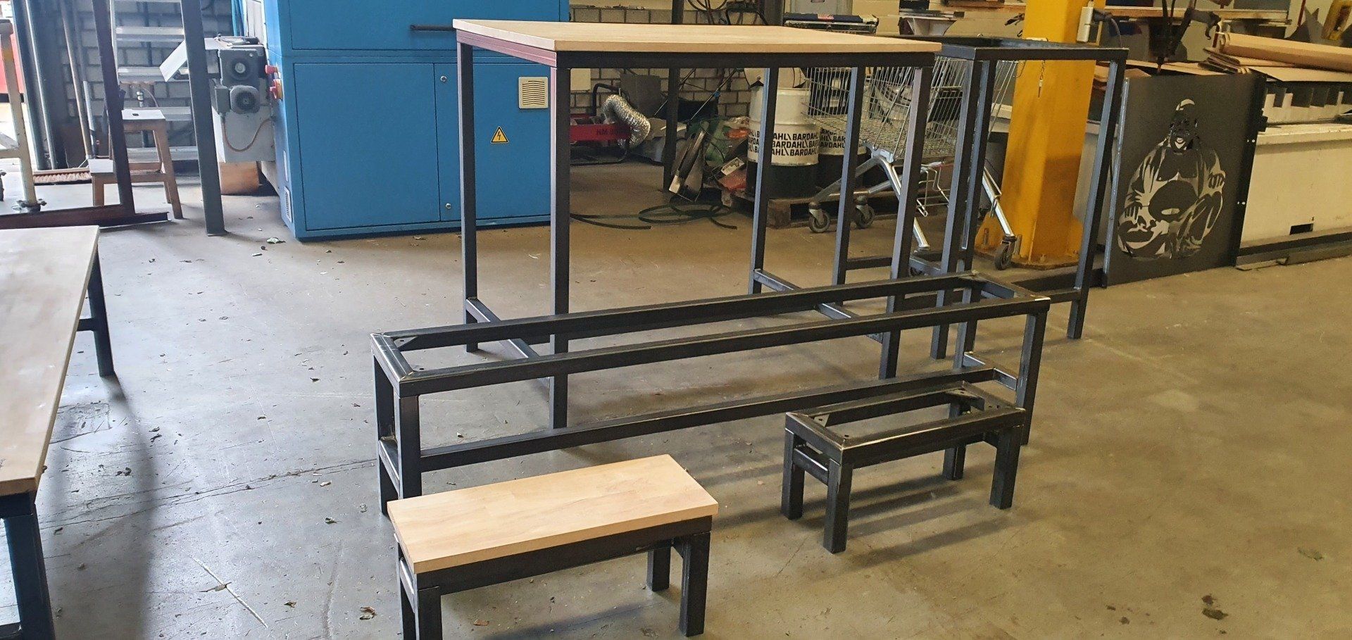 Deze tafels en tafelpoten zijn op maat gemaakt door Bos Tuin & Staal.