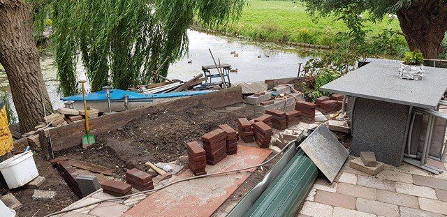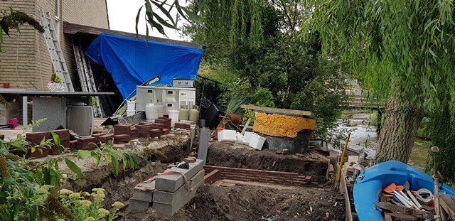 In deze tuin in Spijkenisse wordt op dit moment hard gewerkt om het tuinontwerp te realiseren.